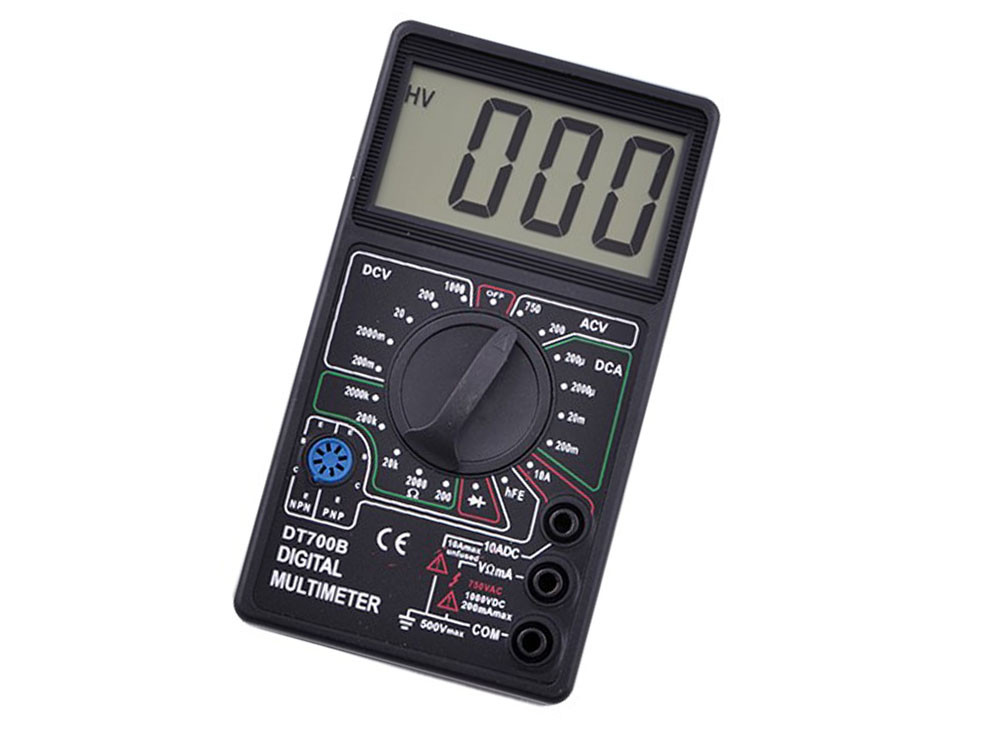 Мультиметр 700B — з великим екраном, компактний, зносостійкий, кишеньковий, призначений для контролю постійної та змінної напруги, постійного струму, опору, перевірки діодів і транзисторів.